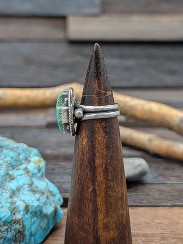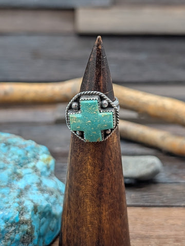 Royston Turquoise Santa Fe Cross Ring Size 6.75 by Navajo artist L. Archuleta All jewelry is handcrafted by Indigenous Artists.  Dimensions: Siz...