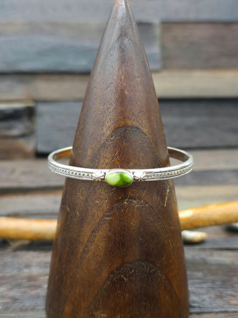 Single-Stone Green Turquoise Sterling Silver Cuff by June Delgarito - 6 1/2 in.