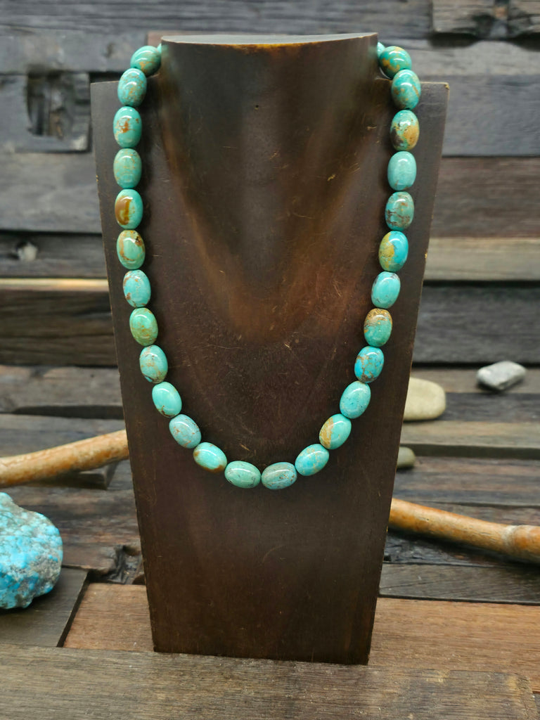 Sky Horse Turquoise Barrel Bead Necklace. All jewelry is handcrafted by Indigenous Artists.  Individual stones will vary.  Dimensions: Length - ...