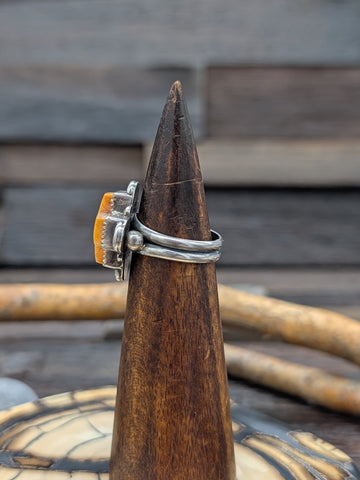 Orange Spiny Oyster 4 Direction Cross Ring Size 8.75by Navajo artist L. Archuleta All jewelry is handcrafted by Indigenous Artists.  Dimensions:...