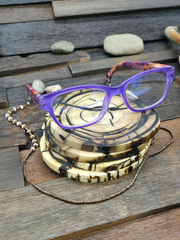 Spiny Oyster and Dark Heishi Eyeglass Chain by Ramona Bird - 25 in.