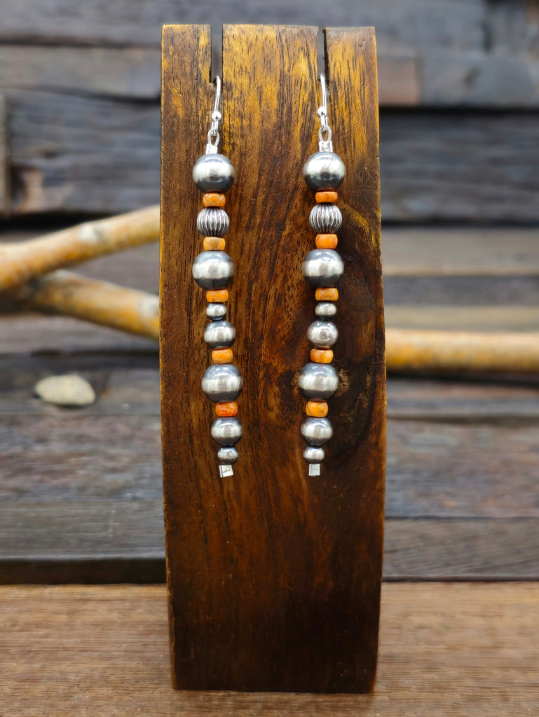 Spiny Oyster and Sterling Silver Bead Earrings.  Individual stones will vary. All jewelry is handcrafted by Indigenous Artists.  Dimensions: Len...