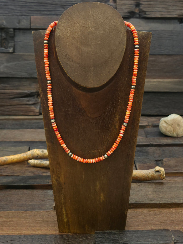 Spiny Oyster and Sterling Silver Bead Necklace - 19 in.
