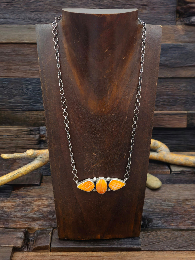 Spiny Oyster Bar Necklace by Navajo silversmith Jimmy Garcia. All jewelry is handcrafted by Indigenous Artists.  Dimensions: length - 18 in.