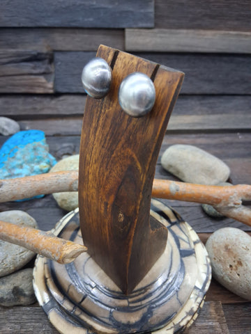Sterling Silver Pillow Bead Earrings by an unknown Navajo Silversmith. All jewelry is handcrafted by Indigenous Artists.  Dimensions: 3/4in