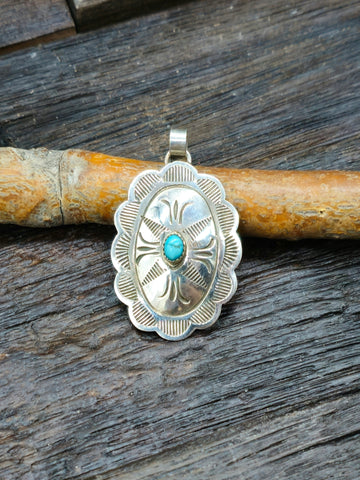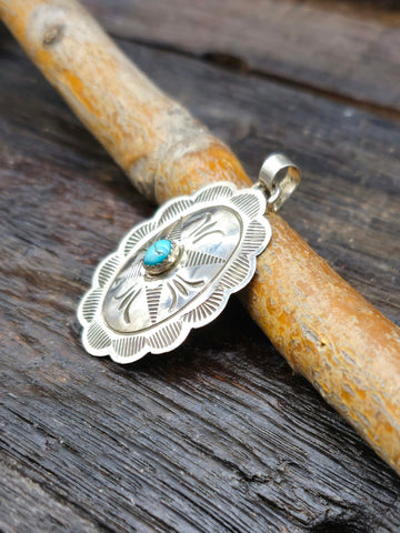 Stamped Sterling Silver and Turquoise Pendant by Bertha Begay