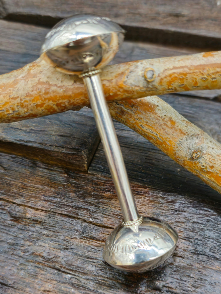 Stamped Sterling Silver Bar Rattle by Navajo silversmith Monica Smith. Individual stamp work may vary.  All jewelry is handcrafted by Indigenous Ar...