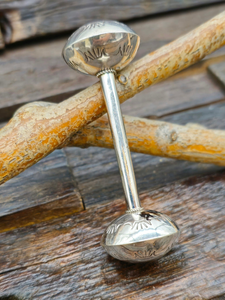 Stamped Sterling Silver Bar Rattle by Navajo silversmith Monica Smith. Individual stamp work may vary.  All jewelry is handcrafted by Indigenous Ar...
