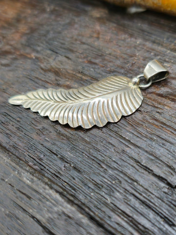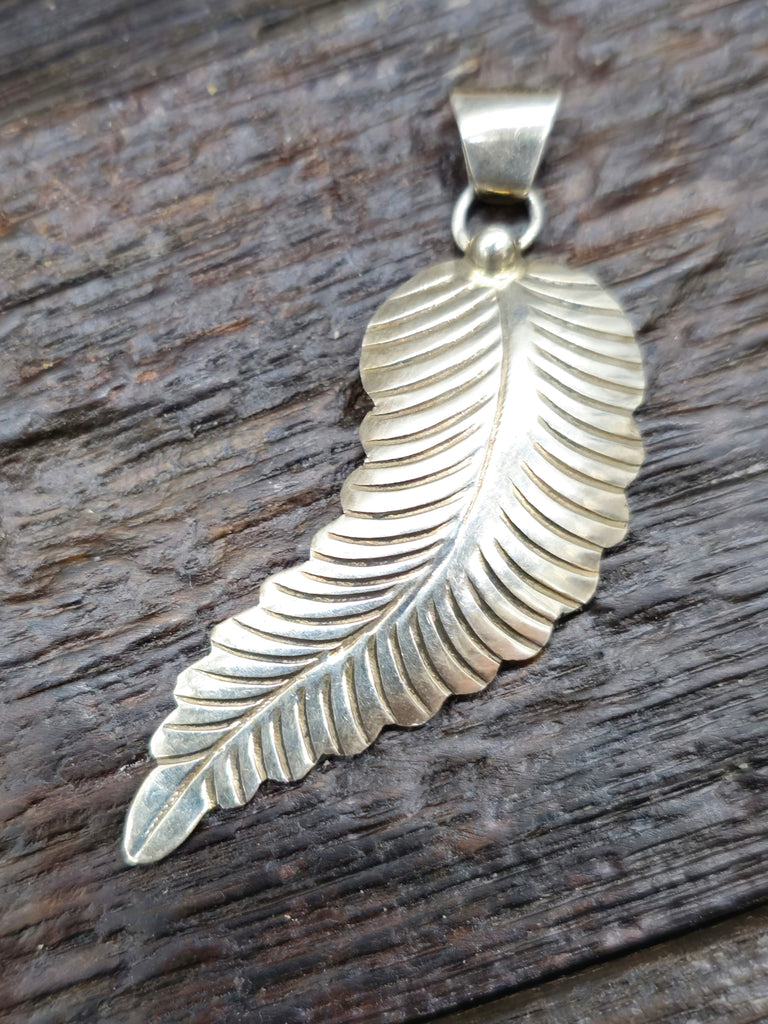 Stamped Sterling Silver Feather Pendant.  Stamped "AS"  by a Navajo silversmith. All jewelry is handcrafted by Indigenous Artists.  Dimensions: ...