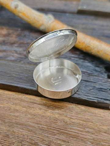 Stamped Sterling Silver Round Pill Case with Turquoise by Jeffrey Castillo