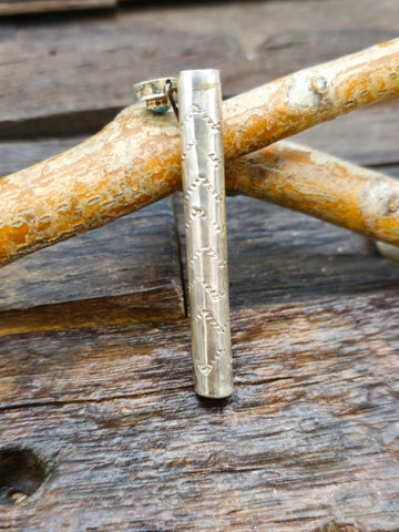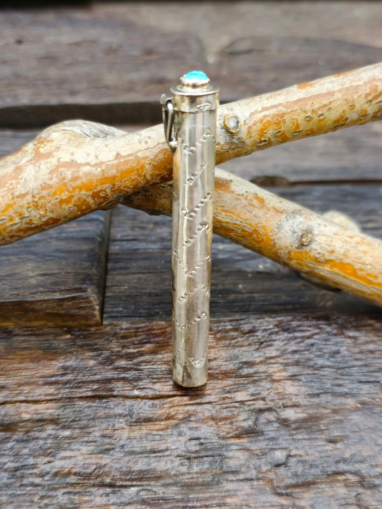 Stamped Sterling Silver Toothpick Holder with Turquoise by Virginia Sandoval