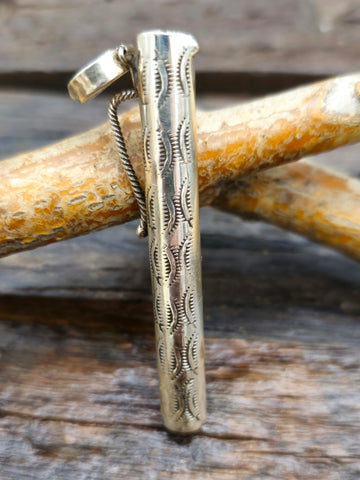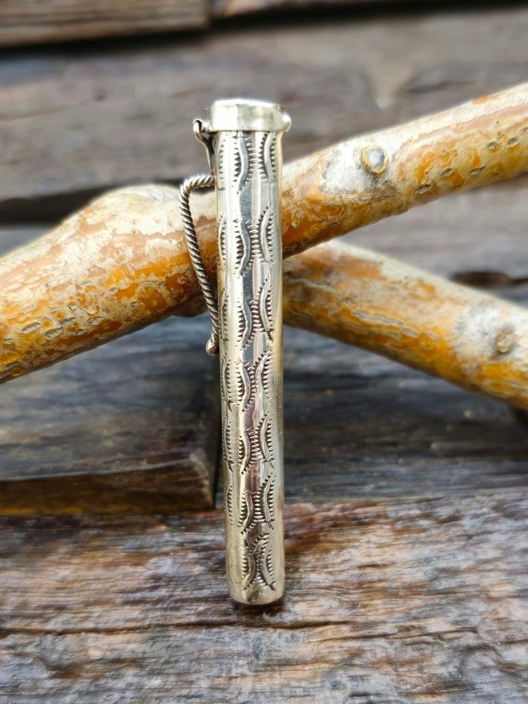 Stamped Sterling Silver Toothpick Holder hand made by a Navajo silversmith. Individual stamp work will vary.  All jewelry is handcrafted by Indigen...