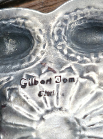 Vintage/Estate Stamped Sterling Silver Turquoise Concho Belt by Navajo silversmith Gilbert Tom.  Large buckle, seven conchos, and eight butterflies...