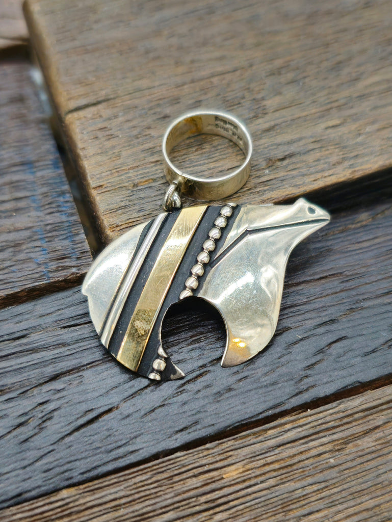 Sterling Silver and Brass Bear Overlay Pendant by Rose Singer