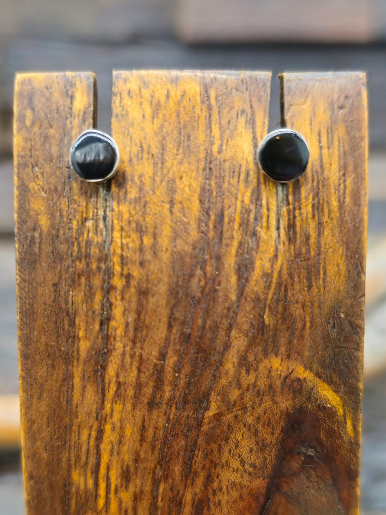 Sterling Silver and Jet Stud Earrings by Celina Rosetta. All jewelry is handcrafted by Indigenous Artists. Individual stones will vary.  Dimensi...