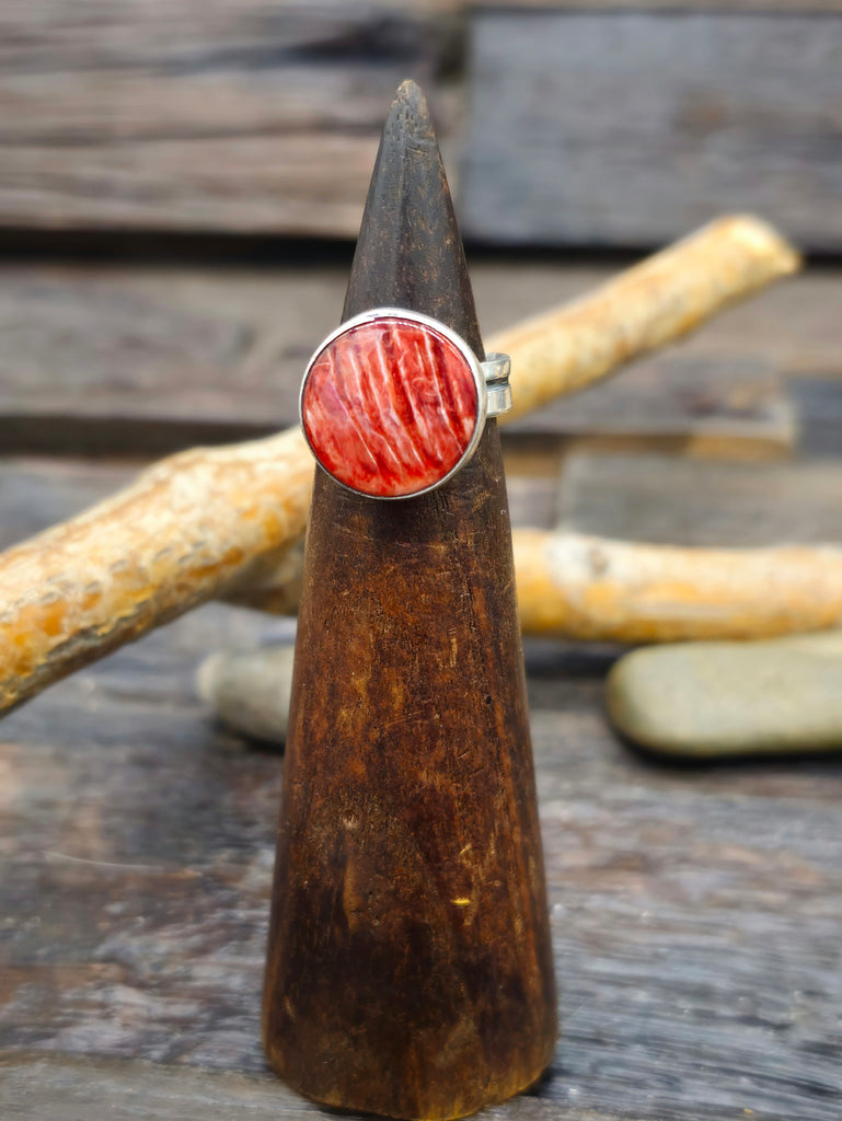 Sterling Silver and Orange Spiny Oyster Ring - Size 6