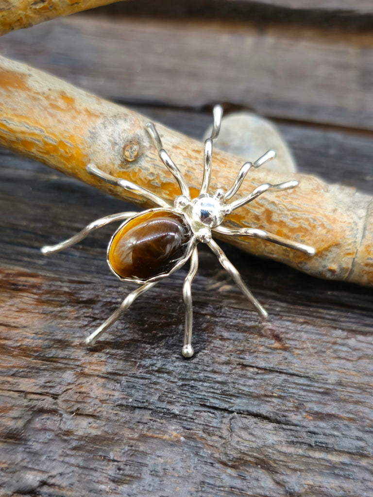 Sterling Silver and Tiger's Eye Spider Pin by Effie Spencer