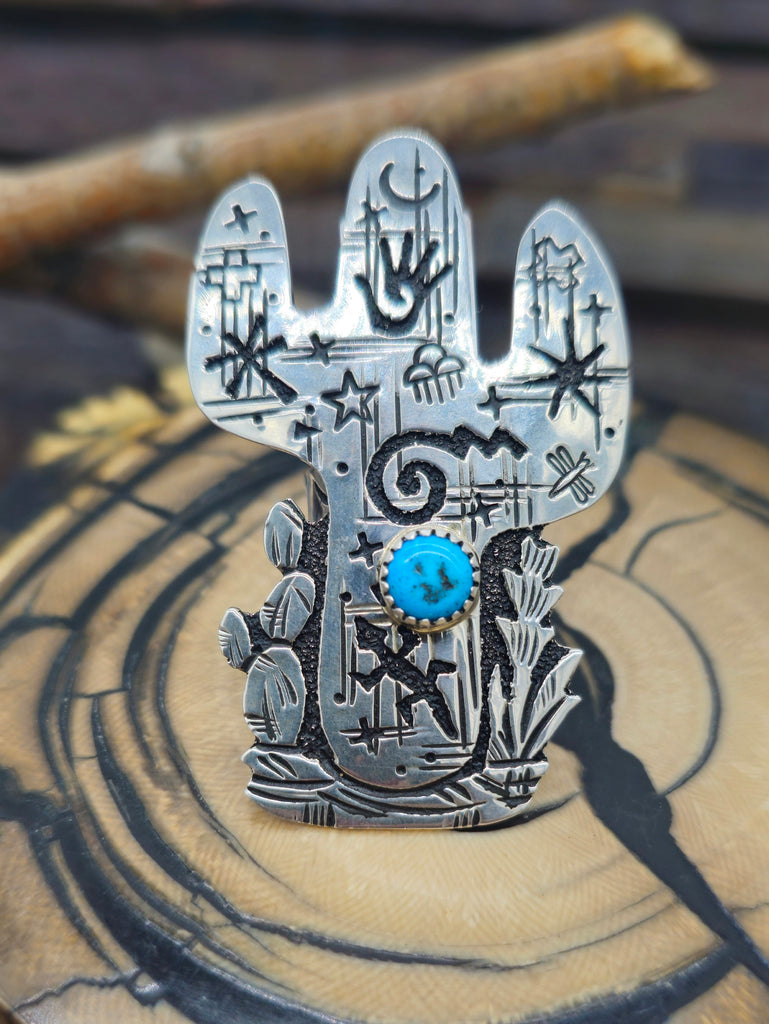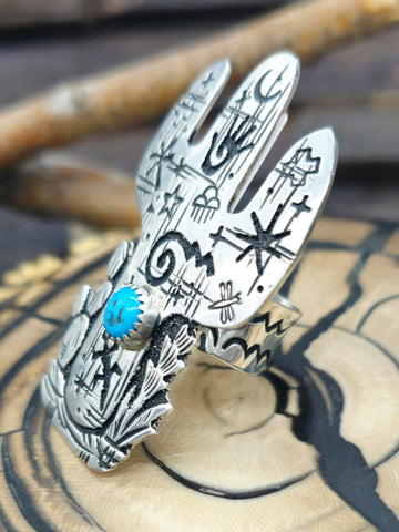 Sterling Silver and Turquoise Cactus Ring by Navajo silversmith Richard Singer. All jewelry is handcrafted by Indigenous Artists.  Dimensions: 2...