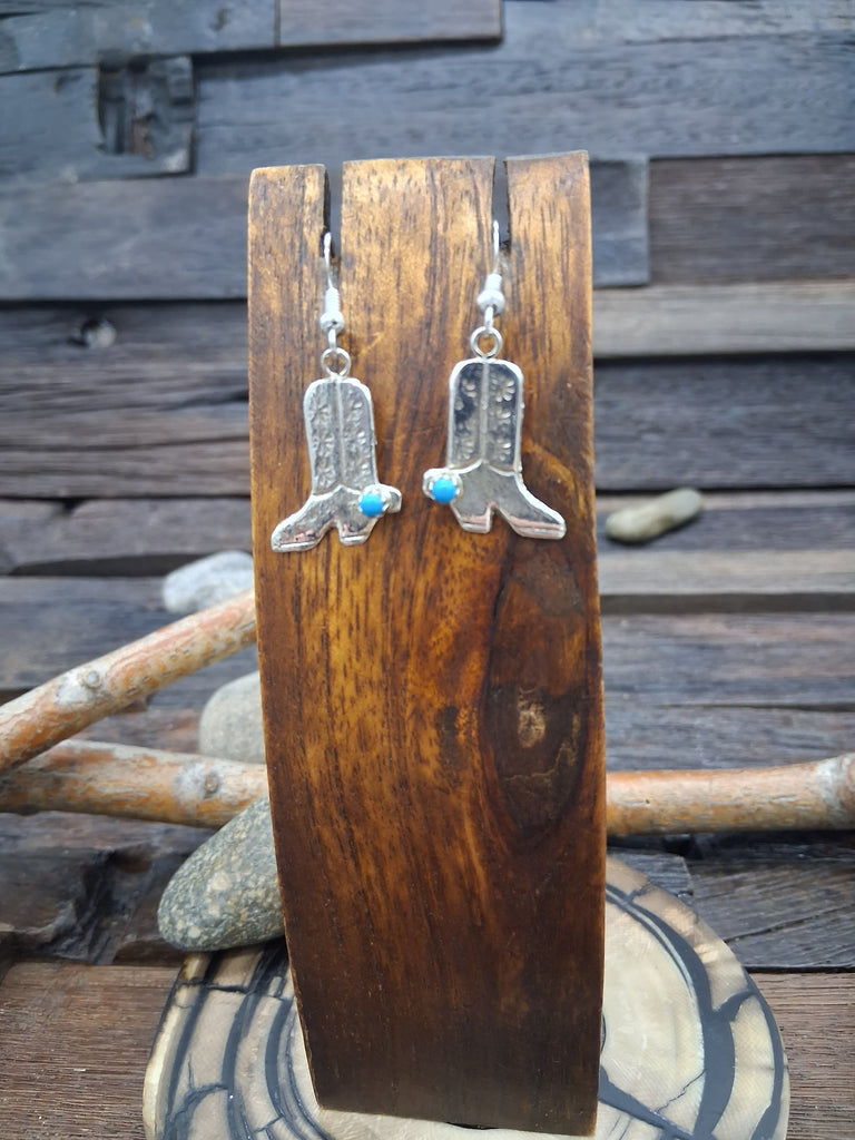 Sterling Silver and Turquoise Cowboy Boot Earrings by Bruce Chee