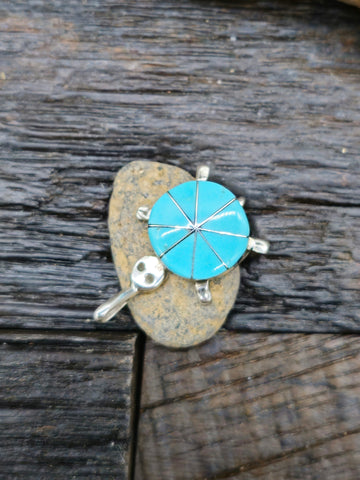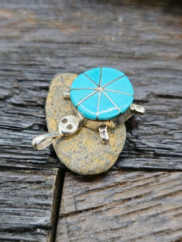 Sterling Silver and Turquoise Inlay Turtle Pendant