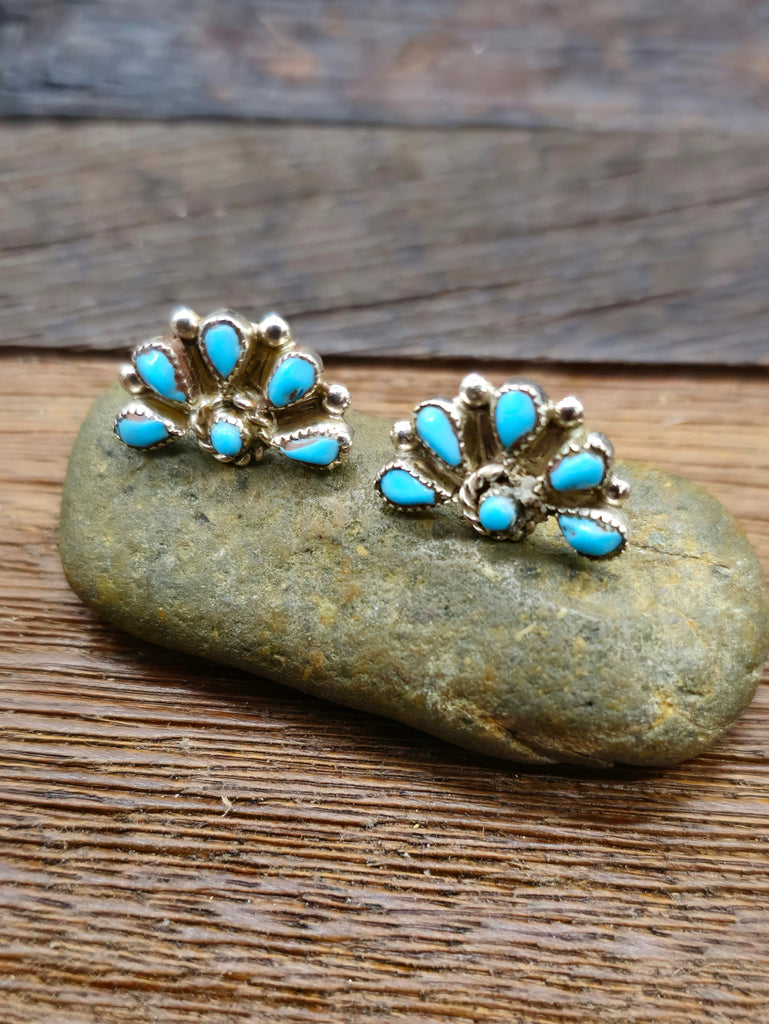 Sterling Silver and Turquoise Needlepoint Earrings by Zuni silversmith Herbert Lastiyano. Individual stones will vary. All jewelry is handcrafted b...