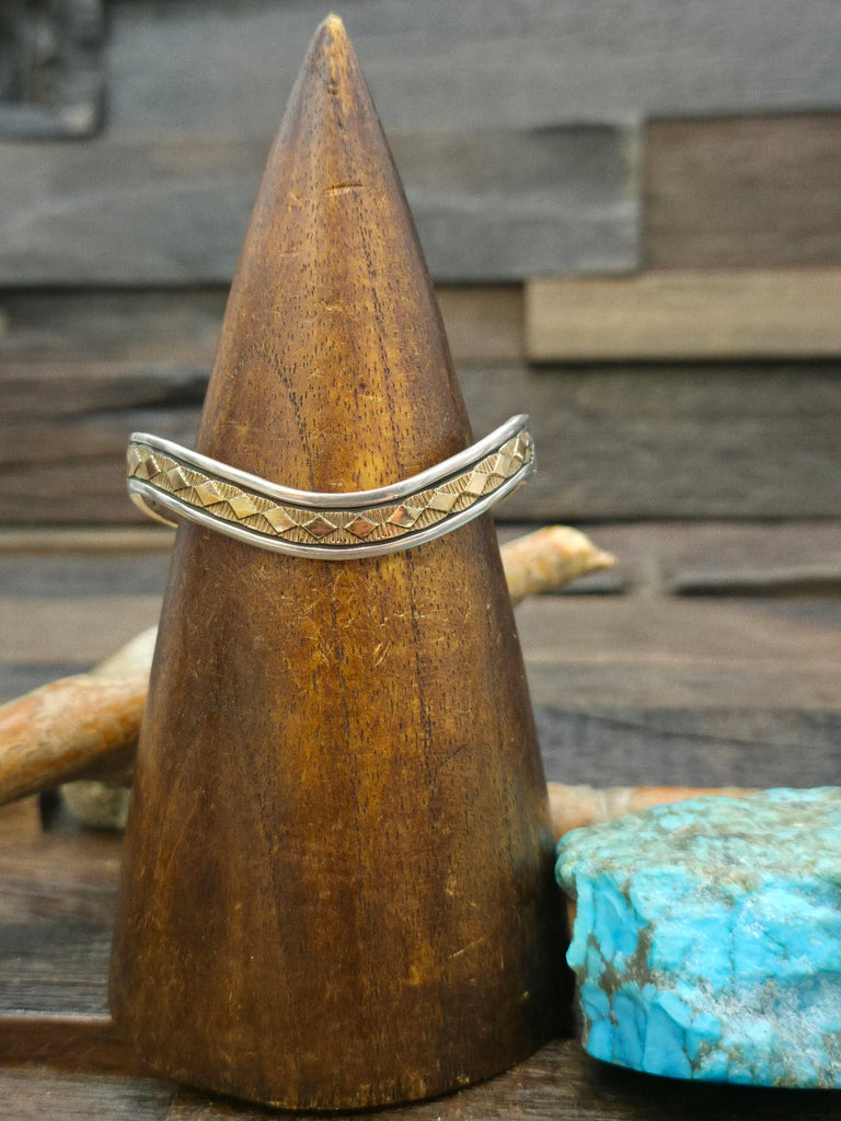 Sterling Silver and 14K Gold Bracelet with Diamond Design by Navajo Silversmith, Bruce Morgan. All jewelry is handcrafted by Indigenous Artists. ...