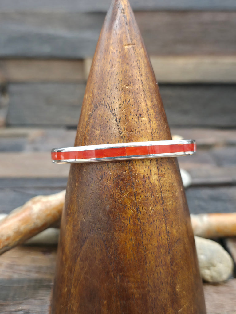 Sterling Silver Coral Channel Inlay Cuff Bracelet by Larry Loretto - 6 1/4 in. with Gap
