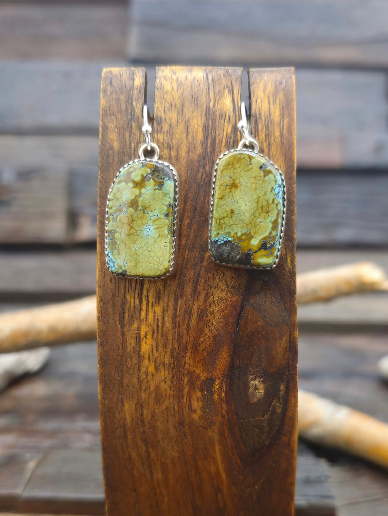 Sterling Silver Green Turquoise Earrings by Rosella Paxton