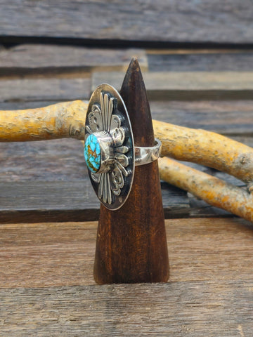 Sterling Silver Overlay and Turquoise Ring by Marila Benally - Size 9 1/2