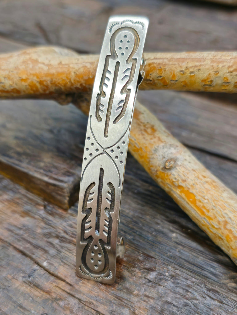 Sterling Silver Overlay Feather Hair Clip by Navajo silversmith Ralph Bia. Individual silver work design will vary.  All jewelry is handcrafted by ...