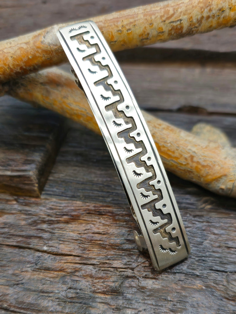 Sterling Silver Overlay Geometric Pattern Hair Clip by Navajo silversmith Ralph Bia. Individual silver work design will vary.  All jewelry is handc...