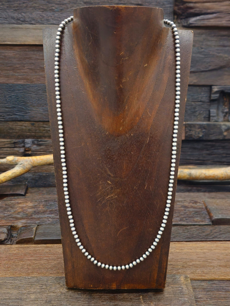 Sterling Silver Oxidized Bead Necklace. All jewelry is handcrafted by Indigenous Artists.  Dimensions: Length - 24 in.  Bead - 4 mm.