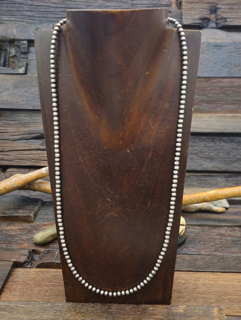 Sterling Silver Oxidized Bead Necklace. All jewelry is handcrafted by Indigenous Artists.  Dimensions: Length - 26 in.  Bead - 4 mm.