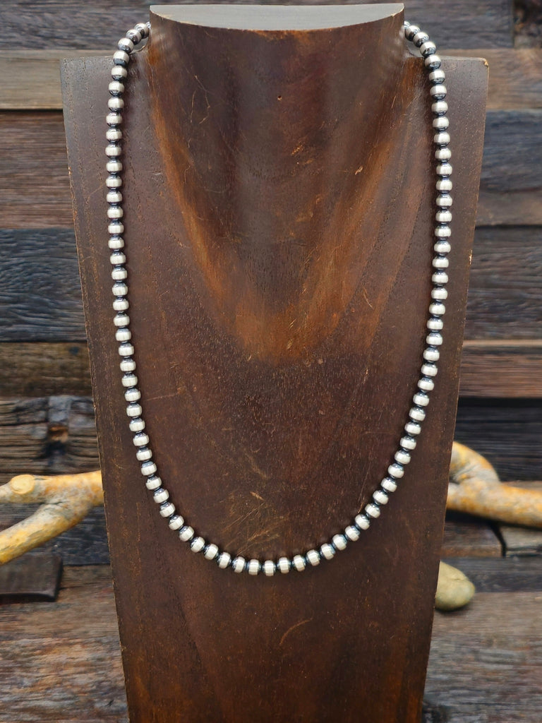 Sterling Silver Oxidized Bead Necklace. All jewelry is handcrafted by Indigenous Artists.  Dimensions: Length - 20 in.  Bead - 5 mm.
