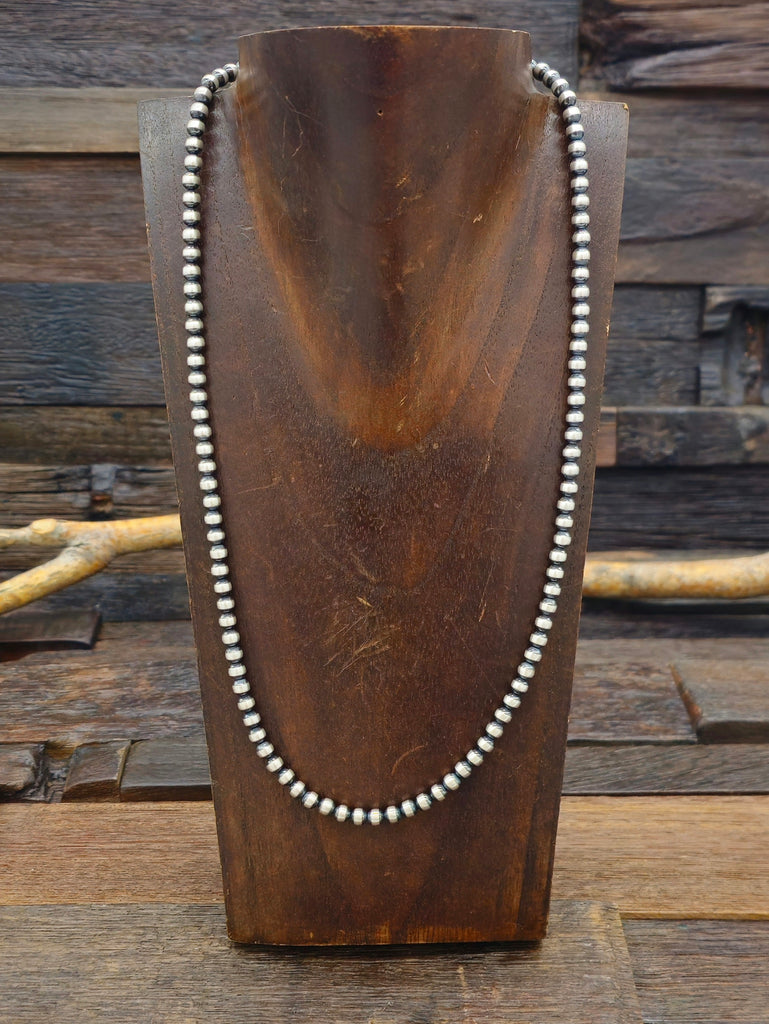 Sterling Silver Oxidized Bead Necklace. All jewelry is handcrafted by Indigenous Artists.  Dimensions: Length - 22 in.  Bead - 5 mm.
