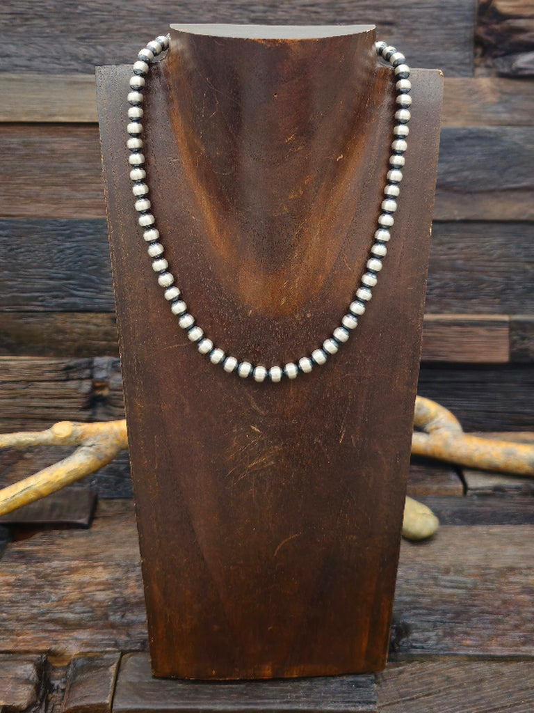 Sterling Silver Oxidized Bead Necklace. All jewelry is handcrafted by Indigenous Artists.  Dimensions: Length - 16 in.  Bead - 4 mm.