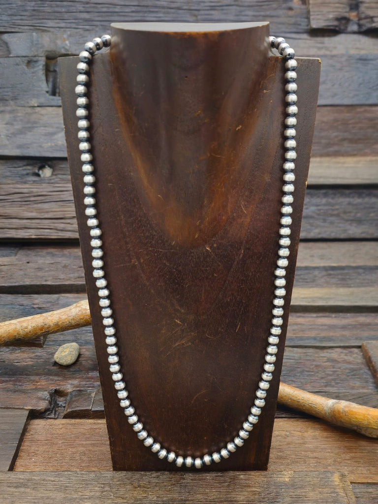 Sterling Silver Oxidized Bead Necklace. All jewelry is handcrafted by Indigenous Artists.  Dimensions: Length - 24 in.  Bead - 6 mm.
