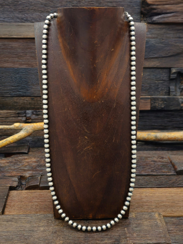 Sterling Silver Oxidized Bead Necklace. All jewelry is handcrafted by Indigenous Artists.  Dimensions: Length - 24 in.  Bead - 4 mm.