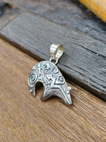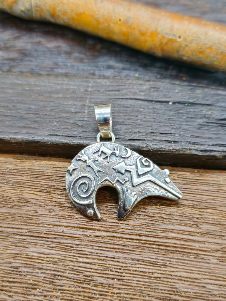 Sterling Silver Petroglyph Bear Pendant All jewelry is handcrafted by Indigenous Artists.  Dimensions: 1 1/4 in. by 1 1/4 in.