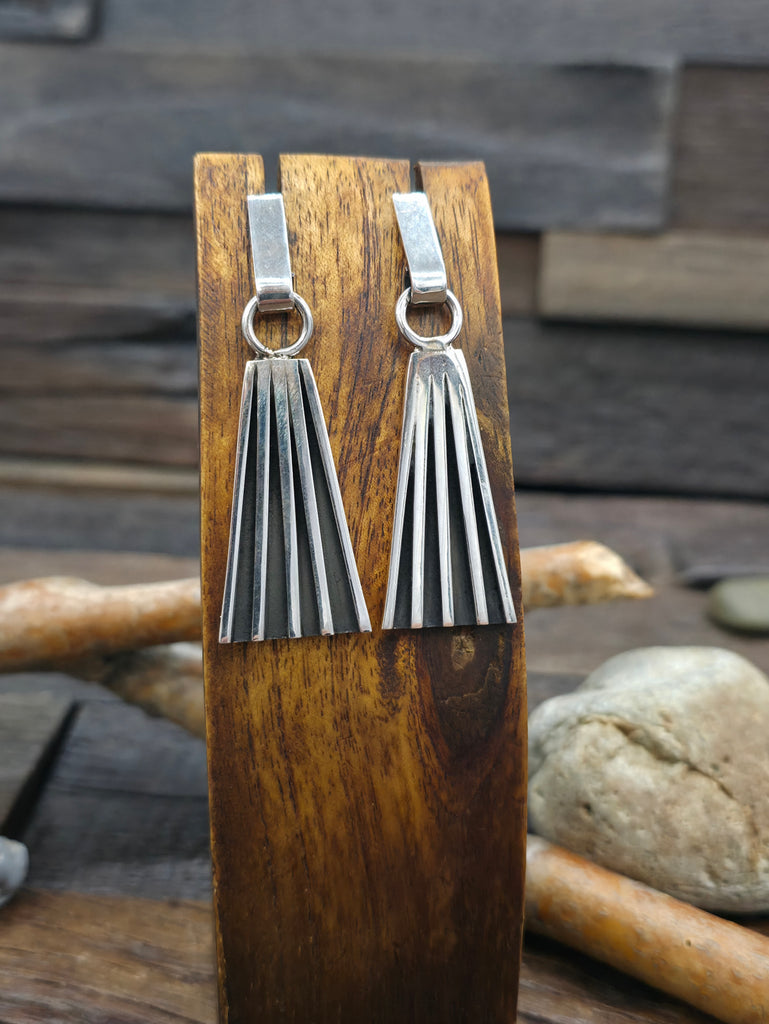 Sterling Silver Post Dangle Earrings by Navajo silversmith Tom Hawk All jewelry is handcrafted by Indigenous Artists.  Dimensions: 2 1/2 in. by ...