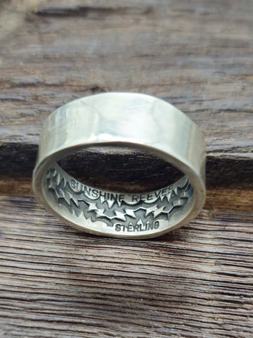Sterling silver band ring with textured interior stamping  by Navajo artist Sunshine Reeves. All jewelry is handcrafted by Indigenous Artists. D...