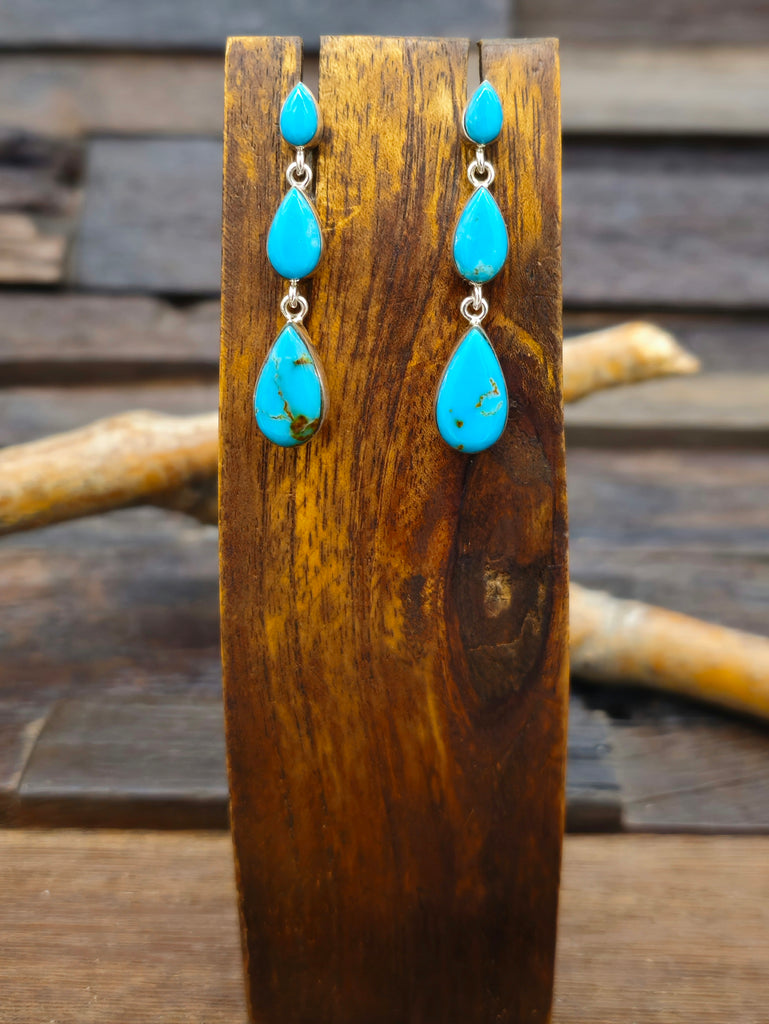 Three Stone Turquoise Sterling Silver Post Earrings by Navajo silversmith Elise Armstrong. All jewelry is handcrafted by Indigenous Artists.  Di...