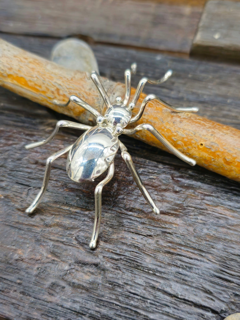 Sterling Silver Spider Pin by Navajo silversmith Effie Garfield All jewelry is handcrafted by Indigenous Artists.  Dimensions: 2 1/4" by 2" by 1...