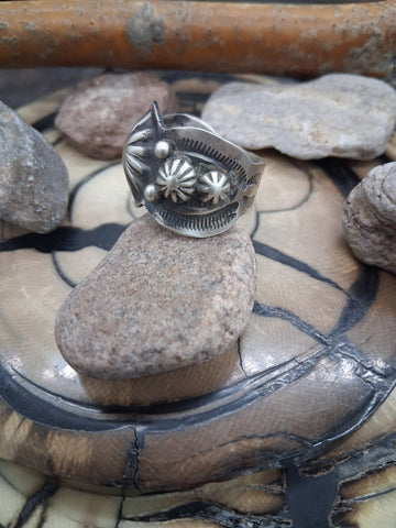 Sterling Silver Stamped Starshot Band Ring Size 8 3/4. Made by Navajo Silversmith Richard Jim. All jewelry is handcrafted by Indigenous Artists. ...