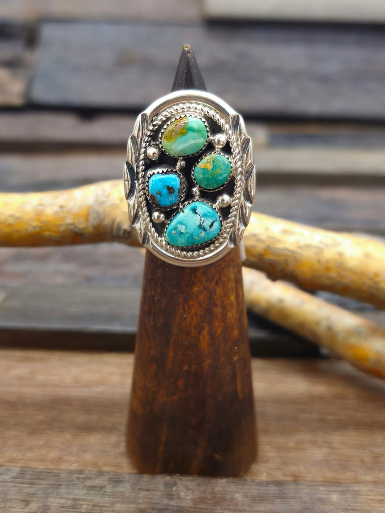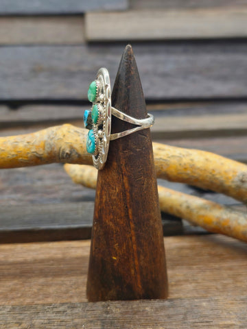 Sterling Silver Turquoise Cluster Ring by Julia Etsitty - Size 5 1/2