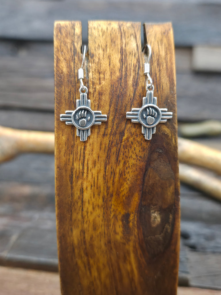 Sterling Silver Turquoise Zia Symbol Dangle Earrings NON NATIVE MADE All jewelry is handcrafted by Indigenous Artists.  Dimensions: 1 in. Dangle