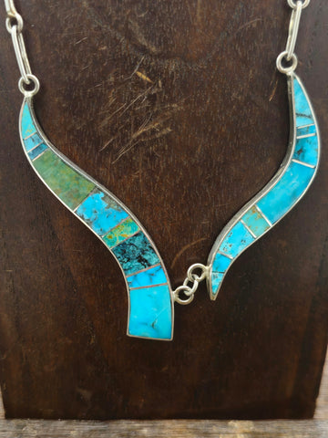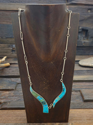 Sterling Silver Turquoise Inlay Necklace by Harold Smith - 20 in.