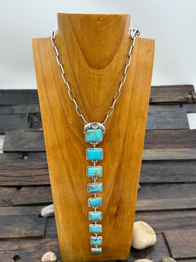 Sterling Silver Turquoise Lariat Necklace 20inches 9inch Drop