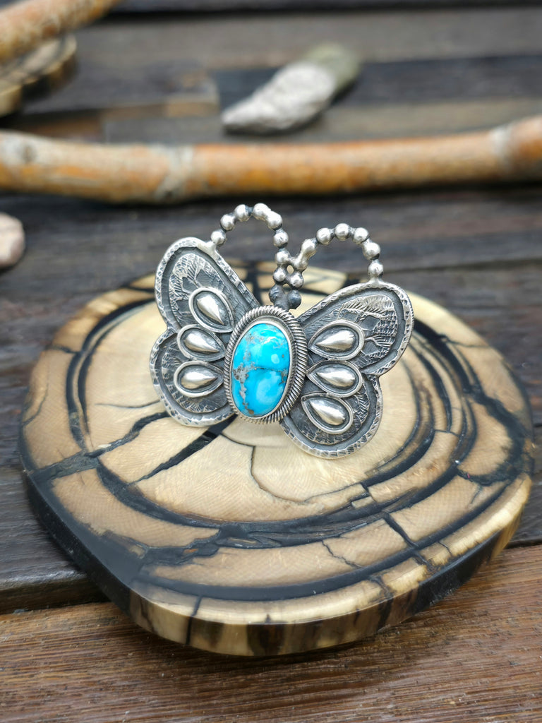 Sterling Silver Turquoise Ring by Navajo silversmith Leon Martinez. All jewelry is handcrafted by Indigenous Artists.  Dimensions: 1 3/4 in. by ...