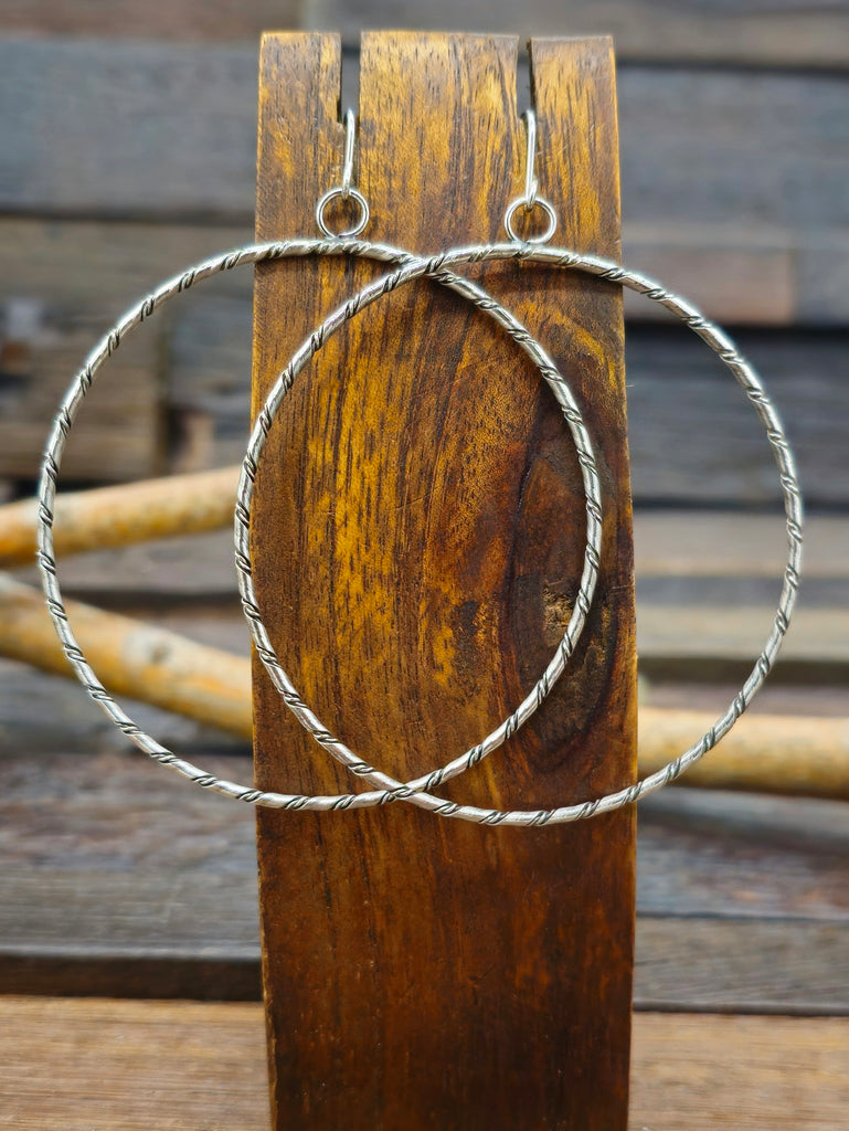 Sterling Silver Twisted Wire Hanging Hoop Earrings by Navajo silversmith Caroline Tsosie. All jewelry is handcrafted by Indigenous Artists.  Dim...